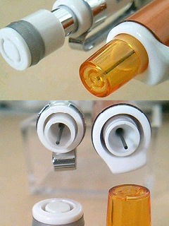 幼児誤飲時に気道を確保するための通気孔がノックボタンにあります。