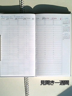 12ヶ月、見開き一週間、土日均等ヴァーティカル(6時-22時、実質5時-24時)、