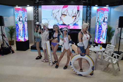 ブルーアーカイブの生徒衣装に身を包んだコスプレイヤーたちがお出迎え!