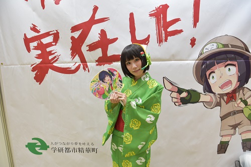 こちらでは【ふるさと納税】の紹介に、精華町の特産品や京町セイカグッズの販売、京町セイカの動画などの展示に、ノベルティーの配布が行われた。